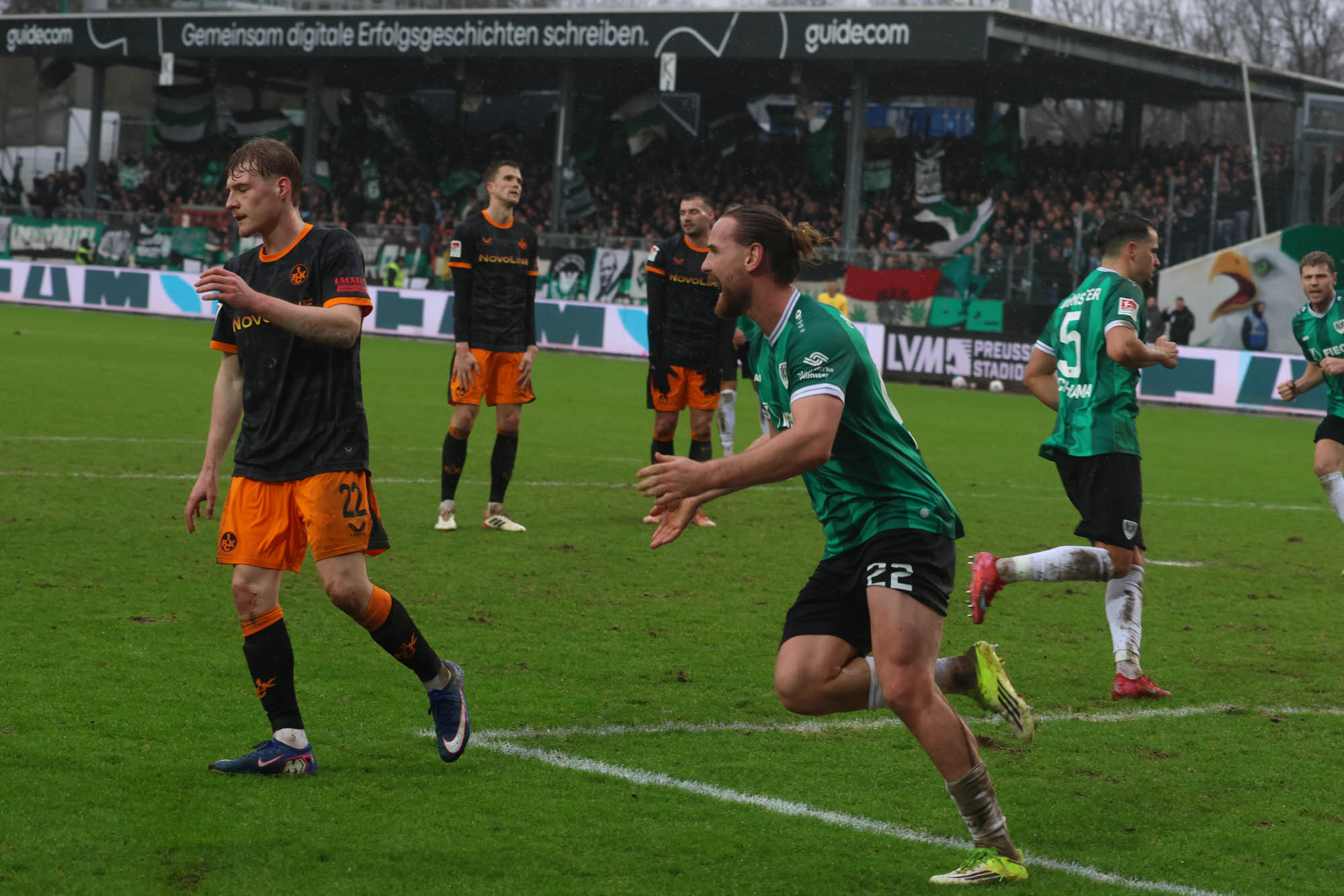 Das war diese gute Phase der Preußen. Das Spiel wurde ein bisschen „wild“, wie es Trainer Alexander Ende später beschrieb. Hier und drüben wurde es teils fahrig, aber der SCP hatte durchaus die Chance auf die eigene Führung. Jano ter Horst nach 23 Minuten mit einem strammen Schuss, dann hätte Marvin Schulz unbedingt schießen müssen, zog es aber vor, mit dem Ball quer durch den Lauterer Strafraum zu kreuzen und den Ball zu verlieren. Die Szene passte ins Bild, denn sie war ein frühes Zeichen für eine weiterhin unerklärliche Spielweise der Preußen. Immer noch einmal abspielen, abdrehen, wegdrehen – aber kein Abschluss. Viele solcher Aktionen hatte der SCP, aber er verschenkte sie durch Ungenauigkeiten und einfach unerklärliche Abspielfehler.