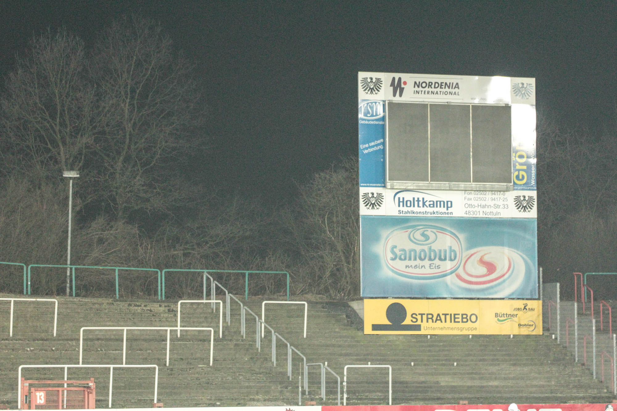 Sie leuchtet! Seit Donnerstag ist die neue Videoleinwand im LVM-Preußenstadion in Betrieb – und soll direkt zum ersten Heimspiel des Kalenderjahres gegen Karlsruhe auch Spielstände und alles andere anzeigen. Auf der anderen Seite wird ein baugleiches Modell unter dem Dach der Osttribüne errichtet. Das dauert allerdings noch etwas.