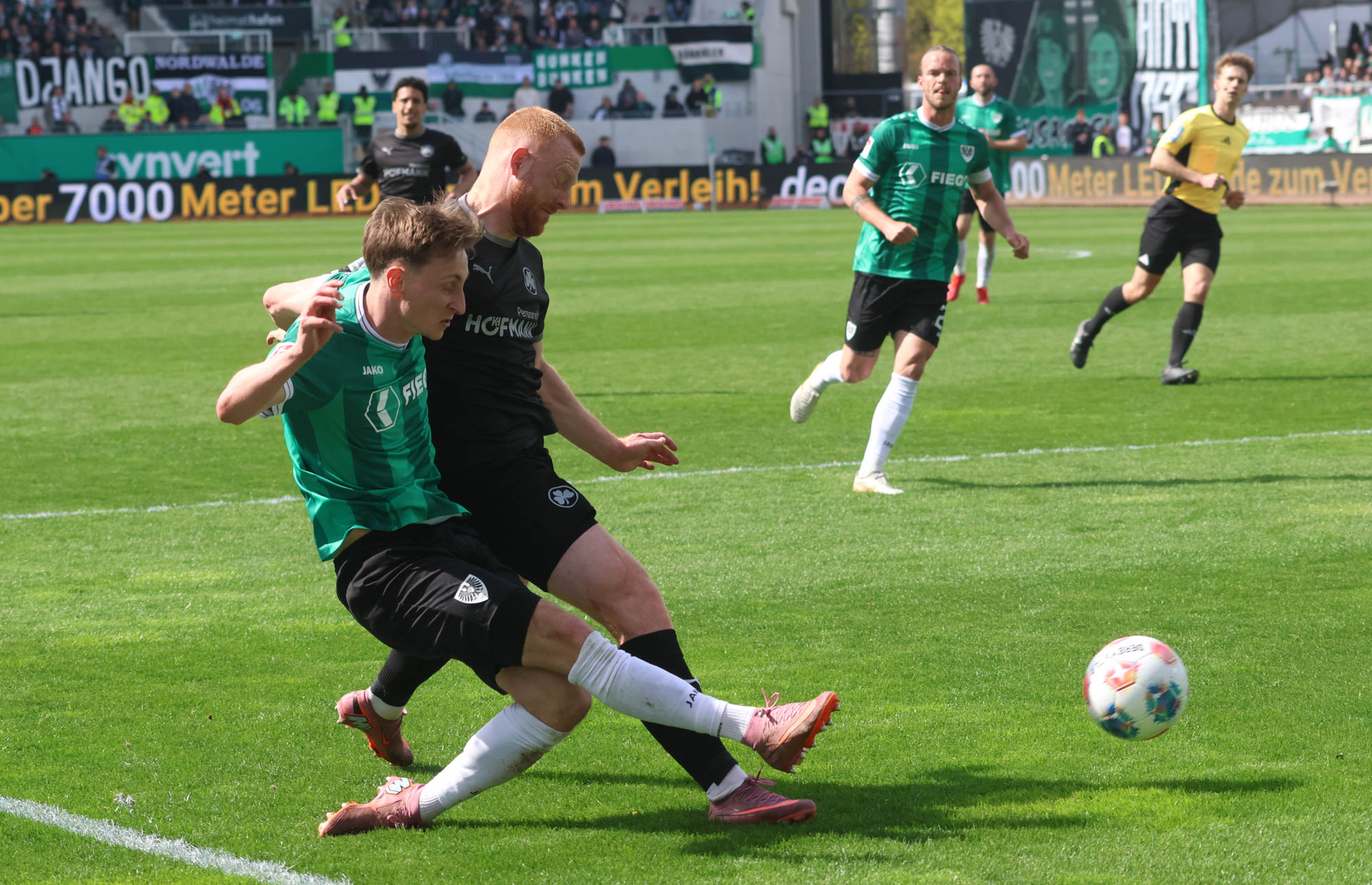 Bis zur 34. Minute ergab sich keine einzige Offensivaktion der Preußen, null, nichts. Die Angst vor dem Fehler war Münster deutlich anzumerken, Fürth war auch gar nicht gefährlich, wirkte aber einfach insgesamt bemühter. Erst nach mehr als einer halben Stunde erarbeitete sich der SCP mal einen Freistoß, den Jannis Heuer dann allerdings weit über das Tor setzte.