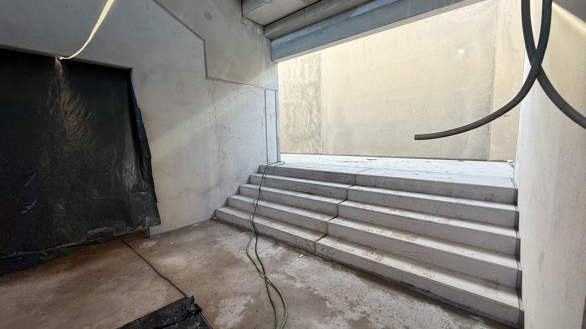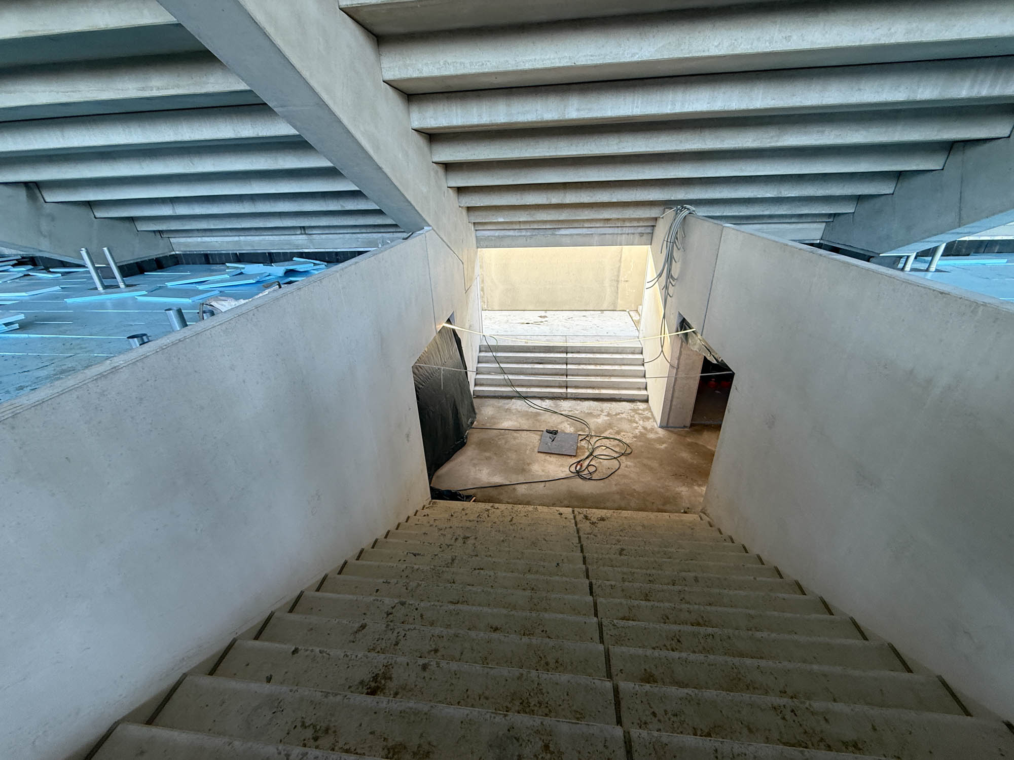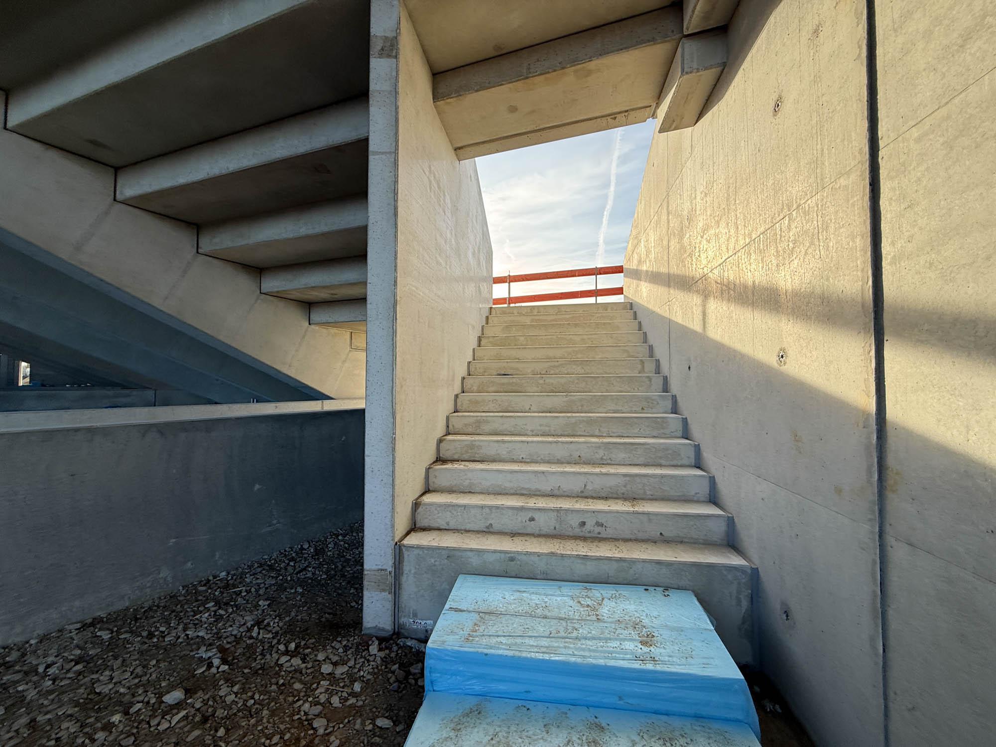 Auf den Kiosken (wie im Westen oberirdisch) erfolgt derzeit die Abdichtung. Spannende Frage: Wie geht es dann mit dem Südost-Eckgebäude weiter? Vorbereitende Arbeiten haben längst stattgefunden, aber der Platz ist eng und noch steht dort ein Flutlichtmast, der erst abgebaut werden muss. Im Gespräch ist, Flutlicht unter der Ost anzubringen, um das Licht vom Mast zu ersetzen. Mal schauen, wie das klappt.