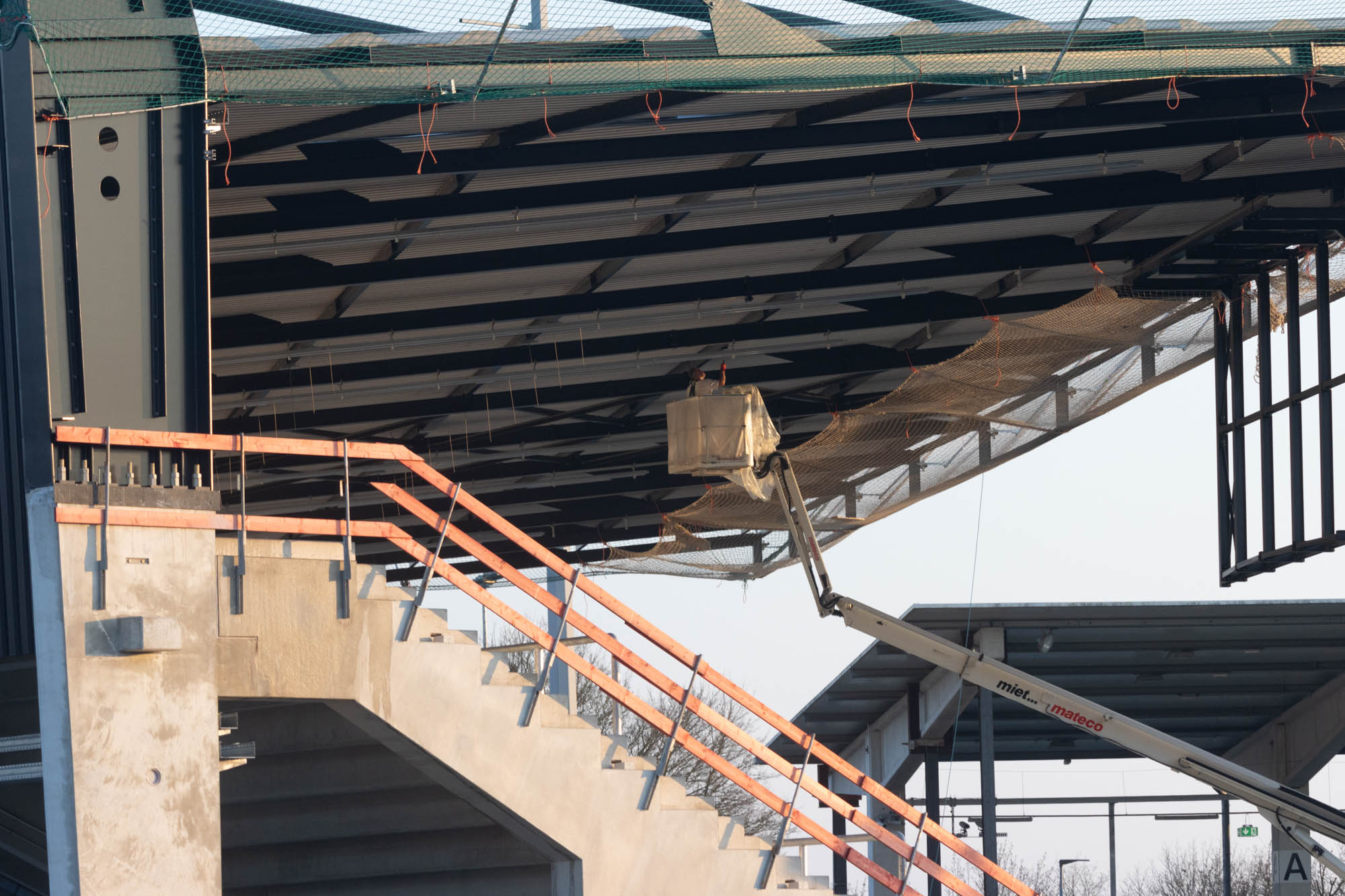 In dieser Woche wurden die Kabelkanäle und verschiedene andere Installationen unter dem Dach der Ostkurve montiert.