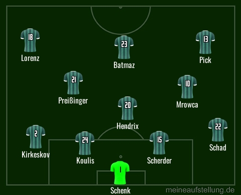 Aufstellung: Schenk - Schad, Scherder, Koulis, Kirkeskov - Hendrix, Bazzoli - Pick, Mees, Lorenz - Fridjonsson