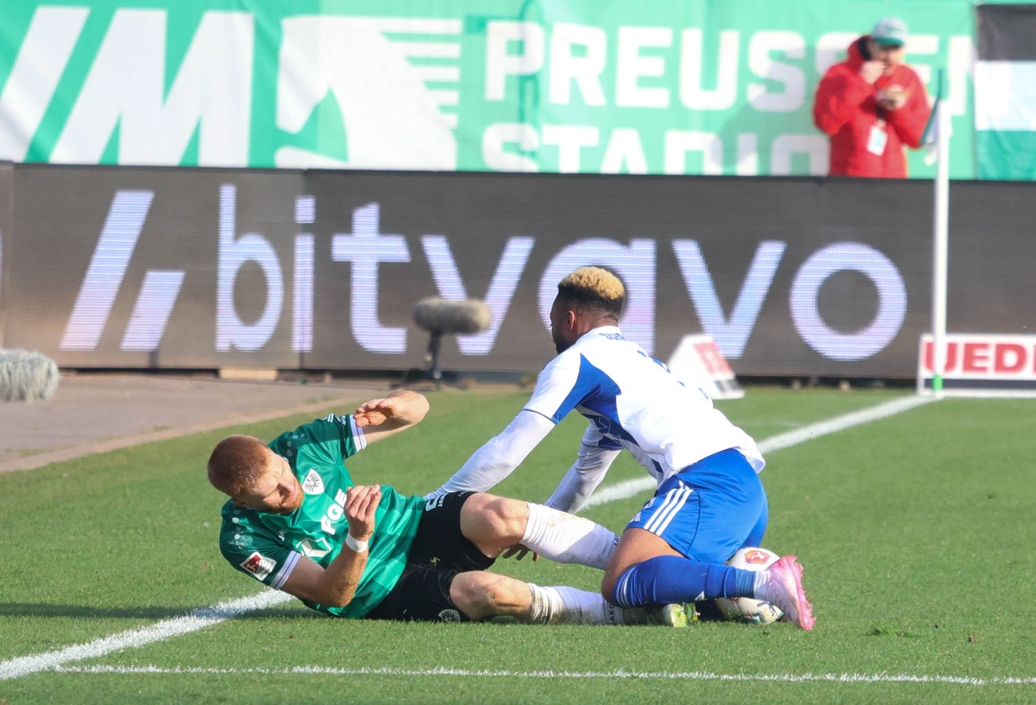 Es war ganz schön was los im Preußenstadion … Und trotz zahlreicher Chancen ging es nach fünf Minuten Nachspielzeit torlos in die Kabine.
