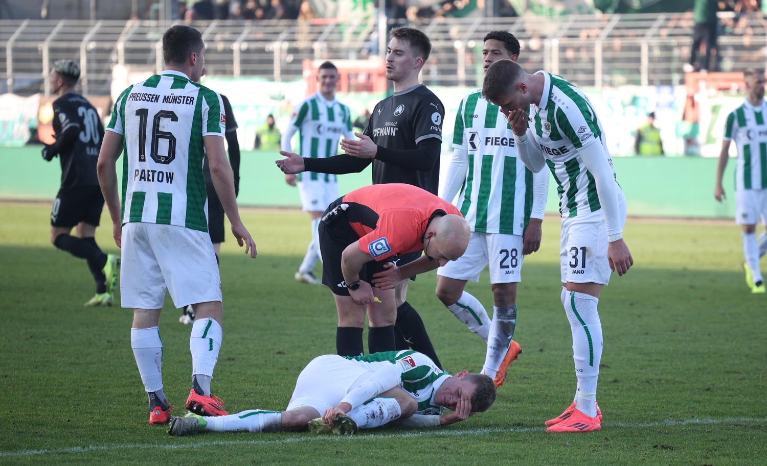 Zwei Dinge nervten Scherder eigentlich nur. Der Platz in Münster ist im Winter weiter eine Zumutung, was nicht am Platzwart-Team liegt, sondern an der gesamten Struktur des Stadions, das zum einen falsch ausgerichtet ist und zum zweiten bis heute keinen wirklich guten Unterboden besitzt. Das ganze Feld zieht zu viel Feuchtigkeit – da kann der Platzwart noch so viel Sand draufkippen. Im Winter verdeckt die Südtribüne fast ein Drittel des Spielfeldes, das auch mit Rasenheizung nicht im gleichen Zustand ist wie der Rest des Platzes. Das ist vorerst nicht zu ändern. „Gefühlt ist der Rasen noch schlechter als vor dem letzten Wechsel“, merkte Scherder an. Das andere Thema war der VAR und die minutenlangen Prüfungen.